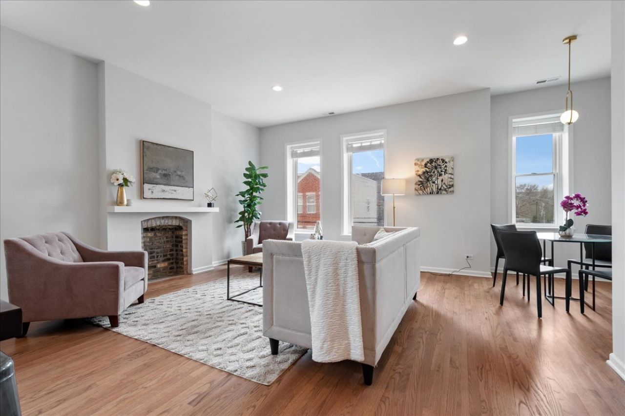 SEE VIDEO TOUR LINK! STEPS TO THE WEST LOOP/TRI-TAYLOR, PUBLIC TRANSPORTATION, PARKS, SEVERAL SPORTING RECREATIONAL & WORKOUT SPOTS FOR BASKETBALL, BASEBALL, SOCCER, HOCKEY, TRACK & FIELD FROM THIS LIGHT FILLED, EXTRA WIDE (20FT) & RENOVATED (2026) NEARLY 1100SQFT 2BED/1BATH PENTHOUSE HOME IN SOUGHT-AFTER ALL BRICK/LIMESTONE BOUTIQUE 2-UNIT ROWHOME. BRAND NEW CUSTOM SHAKER 2-TONED 58-INCH CABINETS/STAINLESS STEEL APPLIANCES/QUARTZ EAT-IN KITCHEN WITH BLACK WALNUT BREAKFAST BAR OPENS TO XTRA WIDE LIVING ROOM & DINING AREA WITH DECORATIVE FIREPLACE & WESTERN VIEWS. LARGE JACK-&-JILL STONE BATH WITH SUBWAY TILE TUB SURROUND TO THE CEILING. GREAT SIZED BEDROOMS WITH AMPLE CLOSET SPACE. SOARING 10FT CEILINGS, DECORATIVE LIGHTING & HARDWOOD FLOORS THROUGHOUT. IN UNIT WASHER AND DRYER & TONS OF STORAGE INCLUDING ENTRY WAY COAT CLOSET. PRIVATE DECK OVERLOOKING PROFESSIONALLY LANDSCAPED GATED BACKYARD IDEAL FOR RELAXING. GARAGE PARKING INCLUDED. AVAILABLE NOW!
