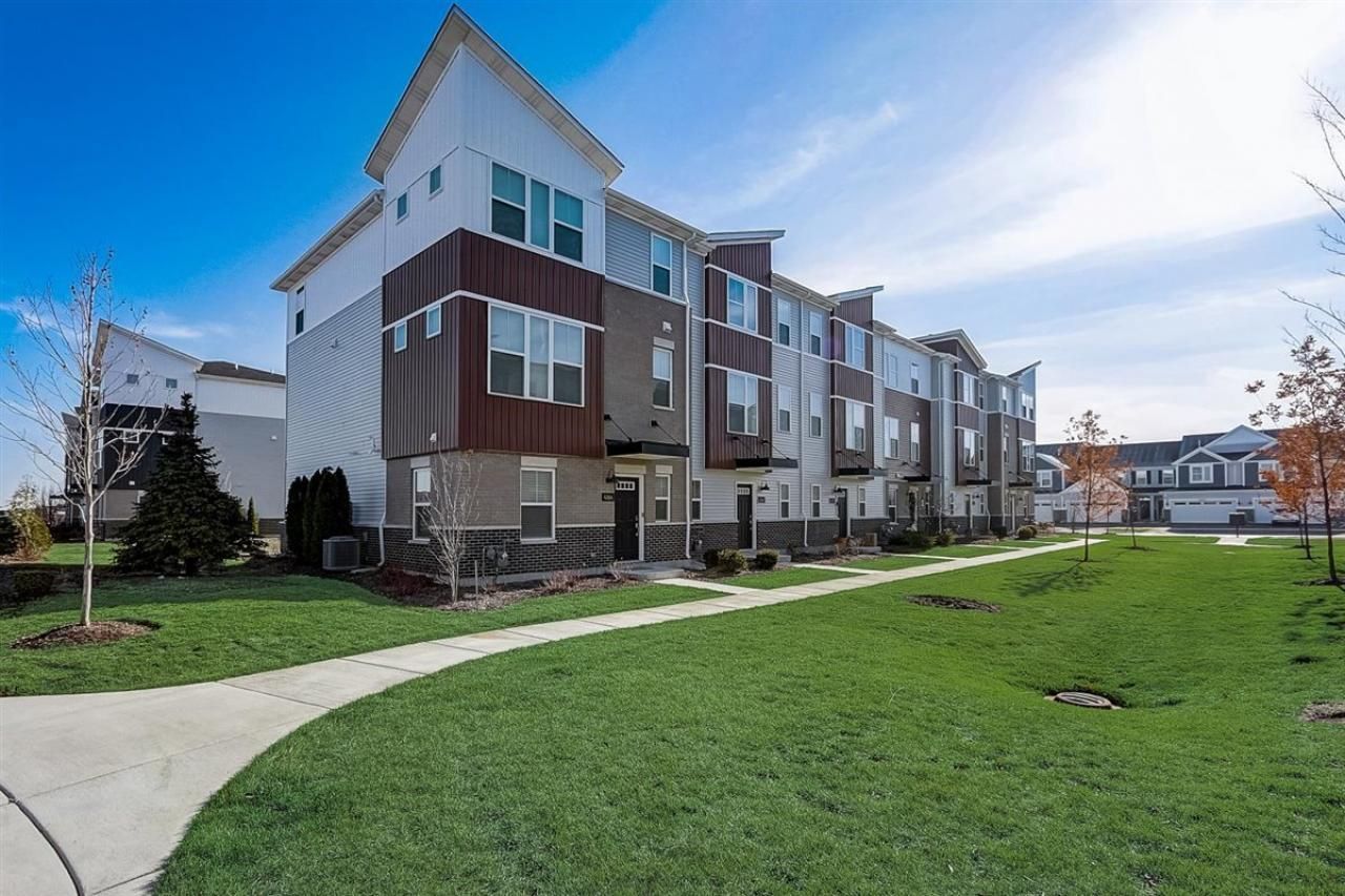 No need to wait for new construction, when this updated end unit is ready for new owners! The popular Ontario model features a spacious foyer with an adjacent sitting room with large corner windows that let in lots of natural light. Access to the two-car garage and plenty of storage space as well. Head up the stairs to the main level of the home, which is a wonderful, open-concept layout that is perfect for entertaining or family time. Gorgeous wood laminate floors run throughout the main level. The large family room faces the front of the home. In the middle of the main level is a stunning chef's kitchen, complete with grey cabinets, quartz counters, SS appliances and a large island with plenty of room for seating. A cozy dining area is on the other side of the kitchen, with access to the laundry room and sliding doors to the deck. The main floor also features a convenient powder room. Upstairs are two large bedroom, two full bathrooms and a large loft space that is being used as a walk-in closet (it can easily be converted back to an open loft or closed up to make a third full bedroom). The primary suite features a ceiling fan, walk-in closet and private ensuite with walk-in shower, dual vanities and white cabinets. The second bedroom and second full bathroom are spacious and updated. Grammercy Square is conveniently located near shopping, dining and commuting. District 204 schools! The home still has 13 years left on the 15-year transferrable structural warranty from the builder. Welcome Home!